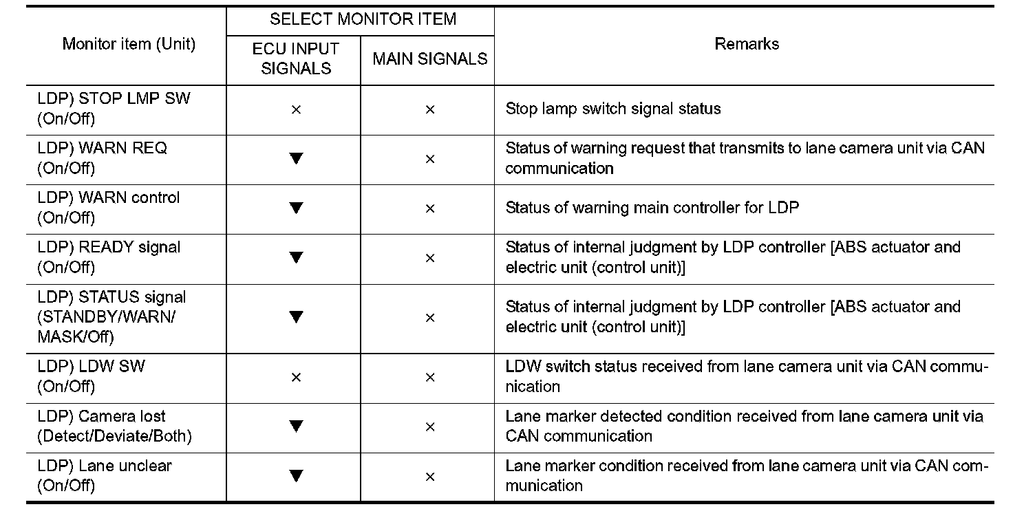 - The active test cannot be started when ABS warning lamp, VDC OFF indicator lamp, SLIP indicator lamp and brake warning lamp are ON.
