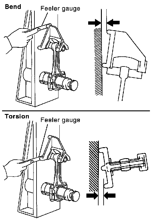 - Measure the side clearance between connecting rod and crankshaft arm with feeler gauge.