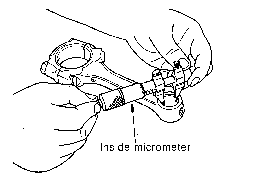 Measure the inner diameter of connecting rod bushing with inside micrometer.