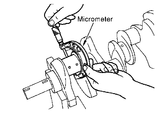 - Measure the outer diameter of crankshaft pin journal with micrometer.
