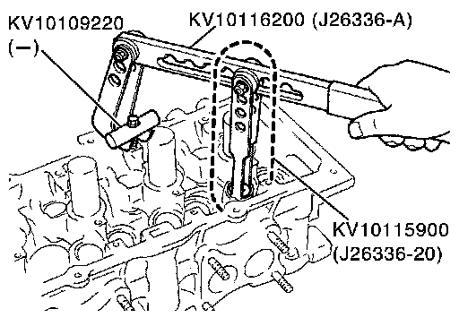 - Compress valve spring with valve spring compressor (SST), attachment (SST) and adapter (SST). Install valve collet with magnetic hand.