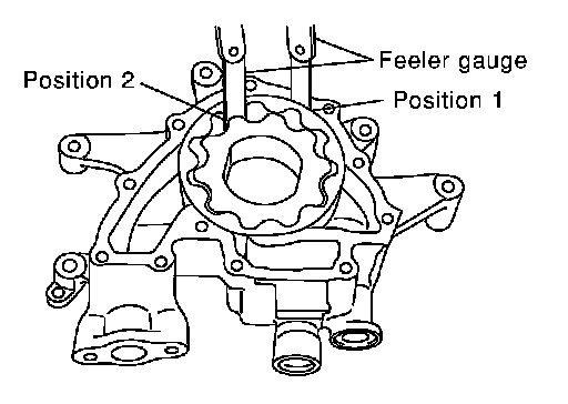 - Tip clearance between oil pump inner rotor and oil pump outer rotor (Position 2)