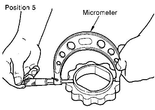 - Measure the outer diameter of protruded portion of oil pump inner rotor with micrometer. (Position 5)
