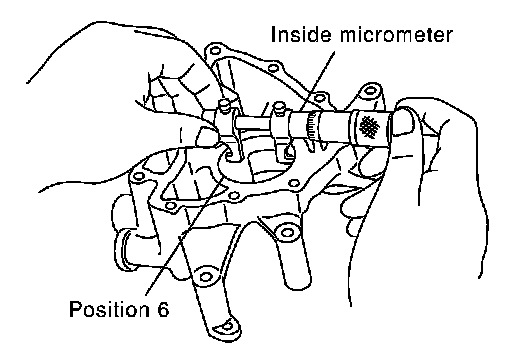 - Measure the inner diameter of oil pump body with inside micrometer. (Position 6)