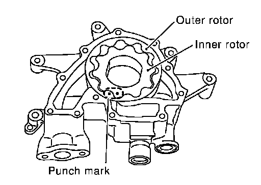 - Install oil pump inner rotor and oil pump outer rotor with the punched marks on the oil pump cover side.