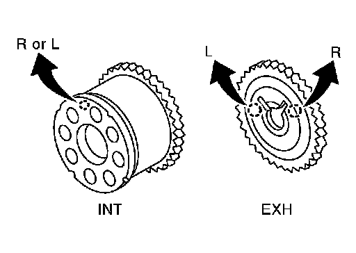 - Dowel pin groove of camshaft sprocket (EXH) (camshaft sprocket is same part both banks)