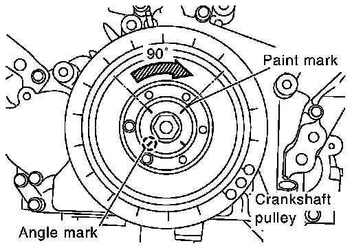 e. Put a paint mark on crankshaft pulley aligning with angle mark on crankshaft pulley bolt.