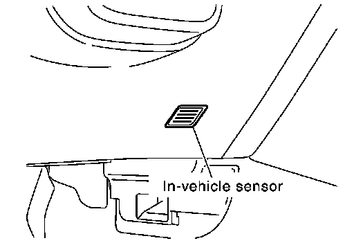 The in-vehicle sensor is located on instrument driver lower panel. It converts variations in temperature of compartment air drawn from the aspirator into a resistance value. It is then input into the unified meter and A/C amp.