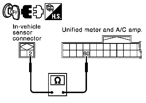 2.CHECK CIRCUIT CONTINUITY BETWEEN IN-VEHICLE SENSOR AND UNIFIED METER AND A/C AMP.