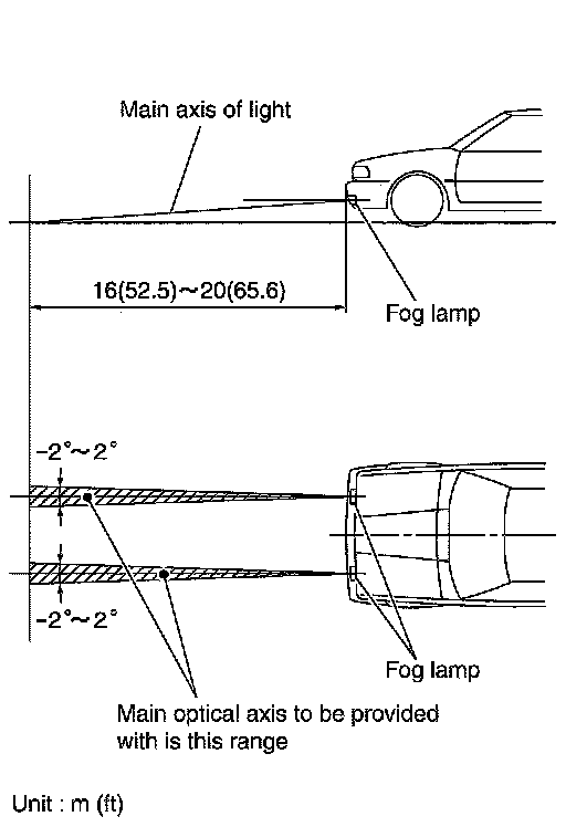 3. Adjust front fog lamps using adjusting screw so that the top edge of the high intensity zone is in the figure.
