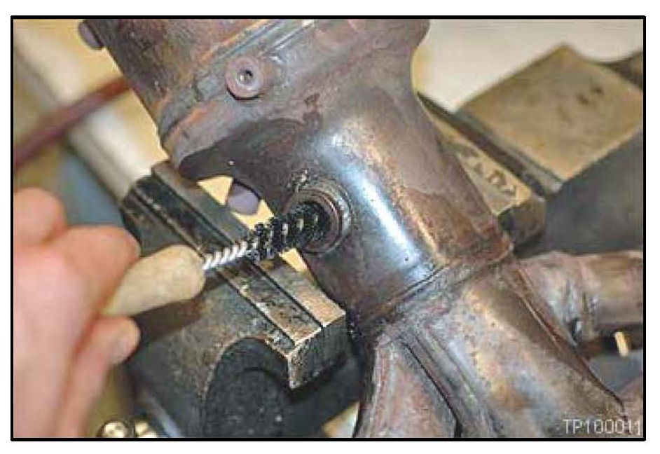 14. If metal debris remains trapped in the boss threads use a spiral nylon brush to remove it.