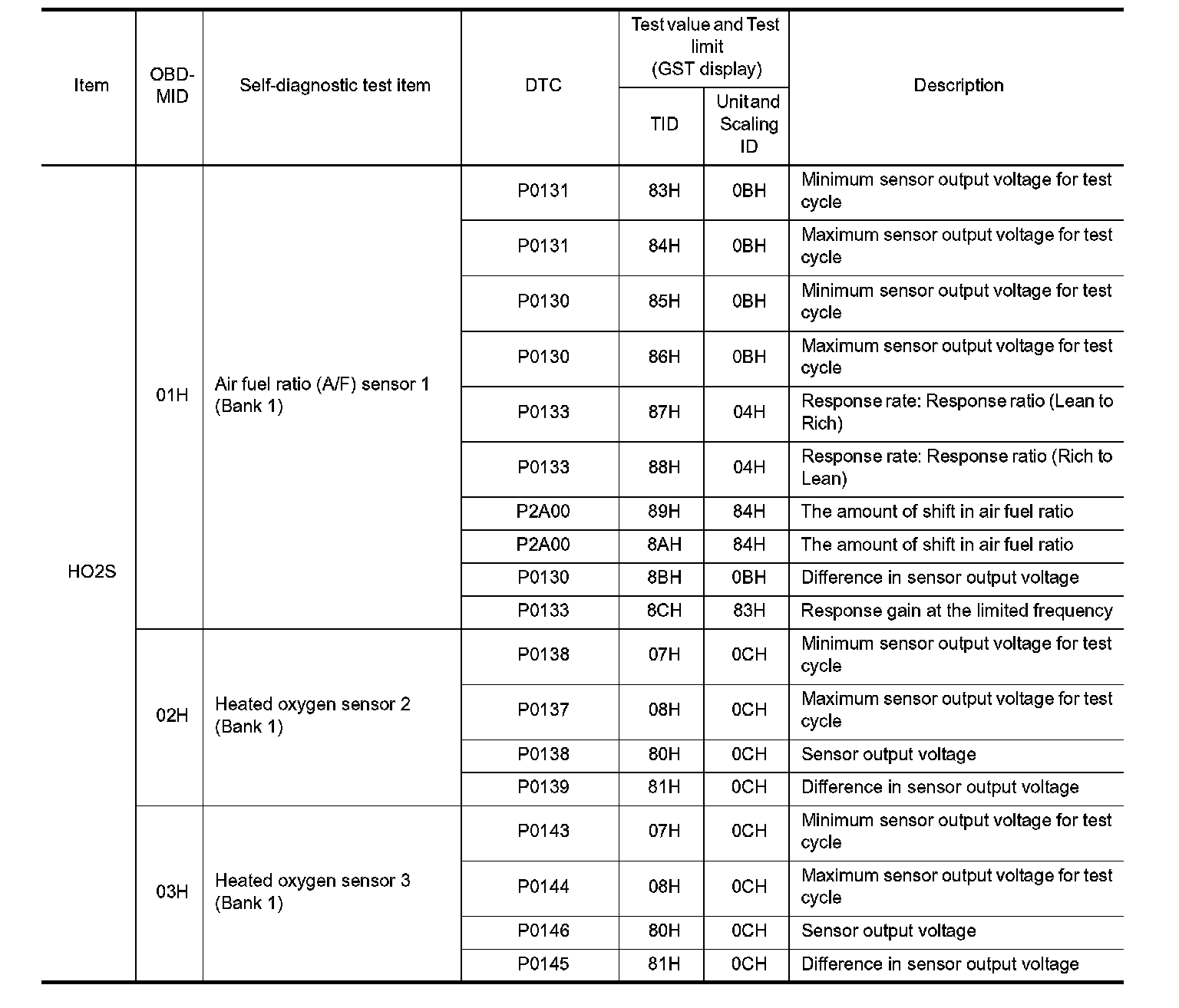 These data (test value and test limit) are specified by On Board Monitor ID(OBDMID), Test ID (TID), Unit and