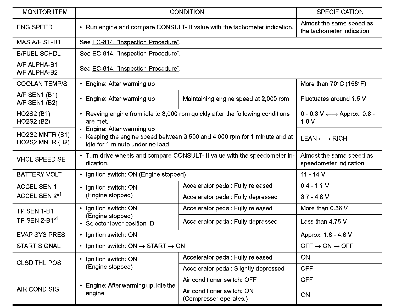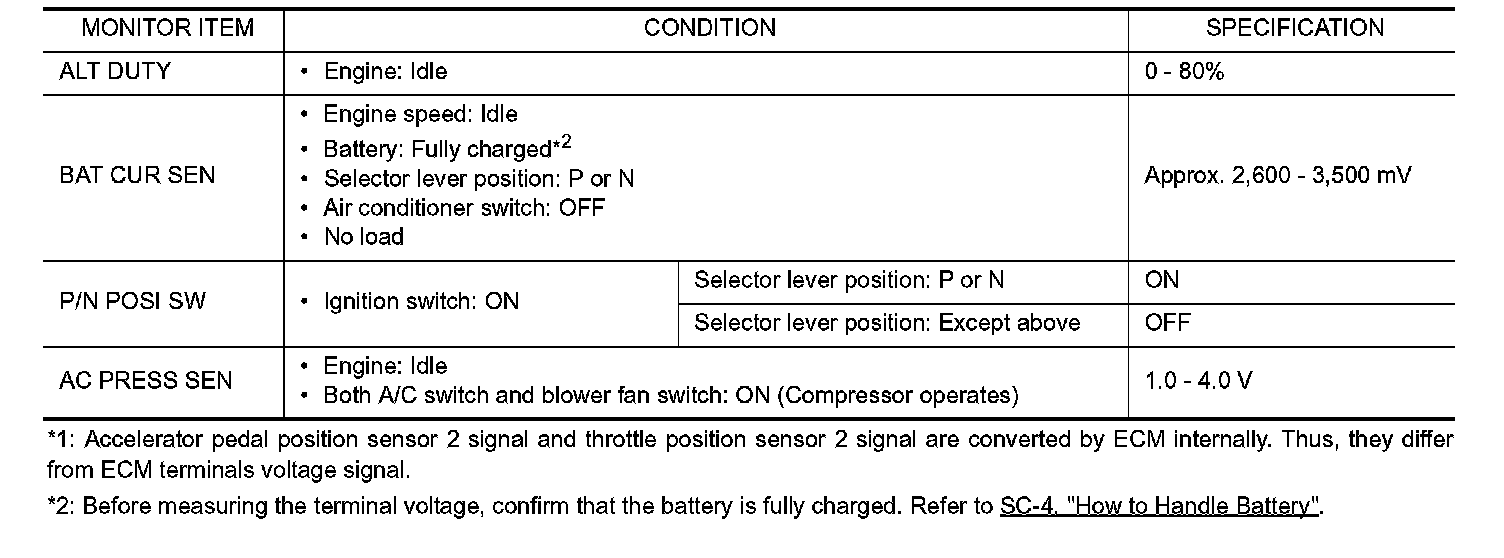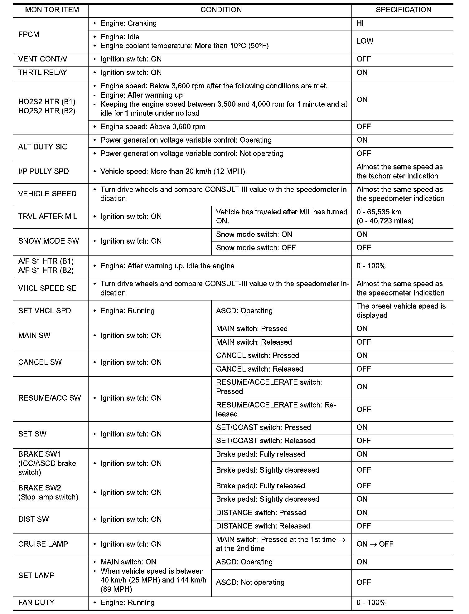 Specification data are output/input values which are detected or supplied by the ECM at the connector.