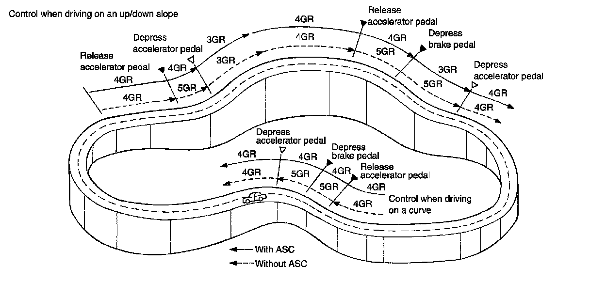 ASC automatically shifts or hold at 3GR or 4GR on certain roads (up/down slope and curve) and driving condition.