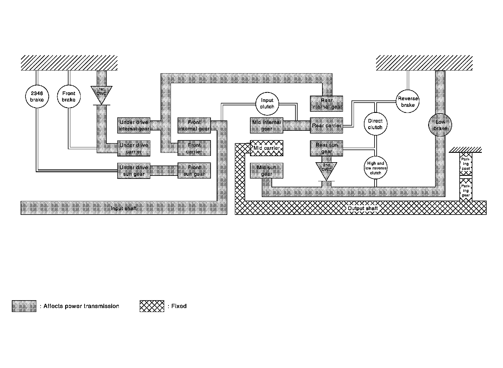 - The same as for the "N" position, since the low brake is released, so torque from the input shaft drive is not transmitted to the output shaft.