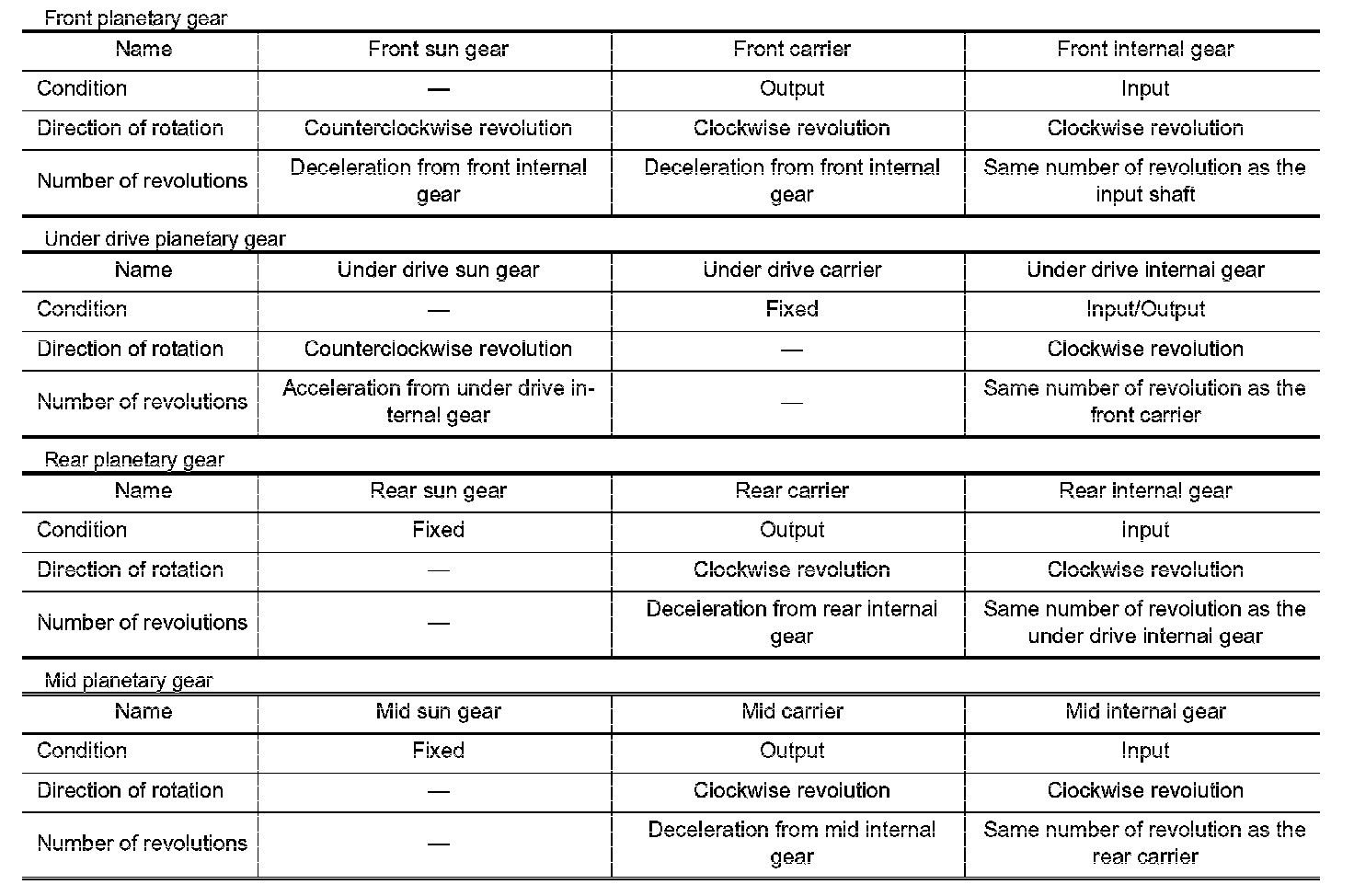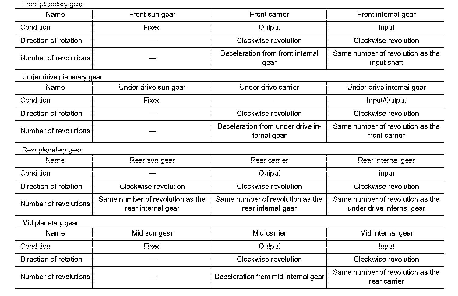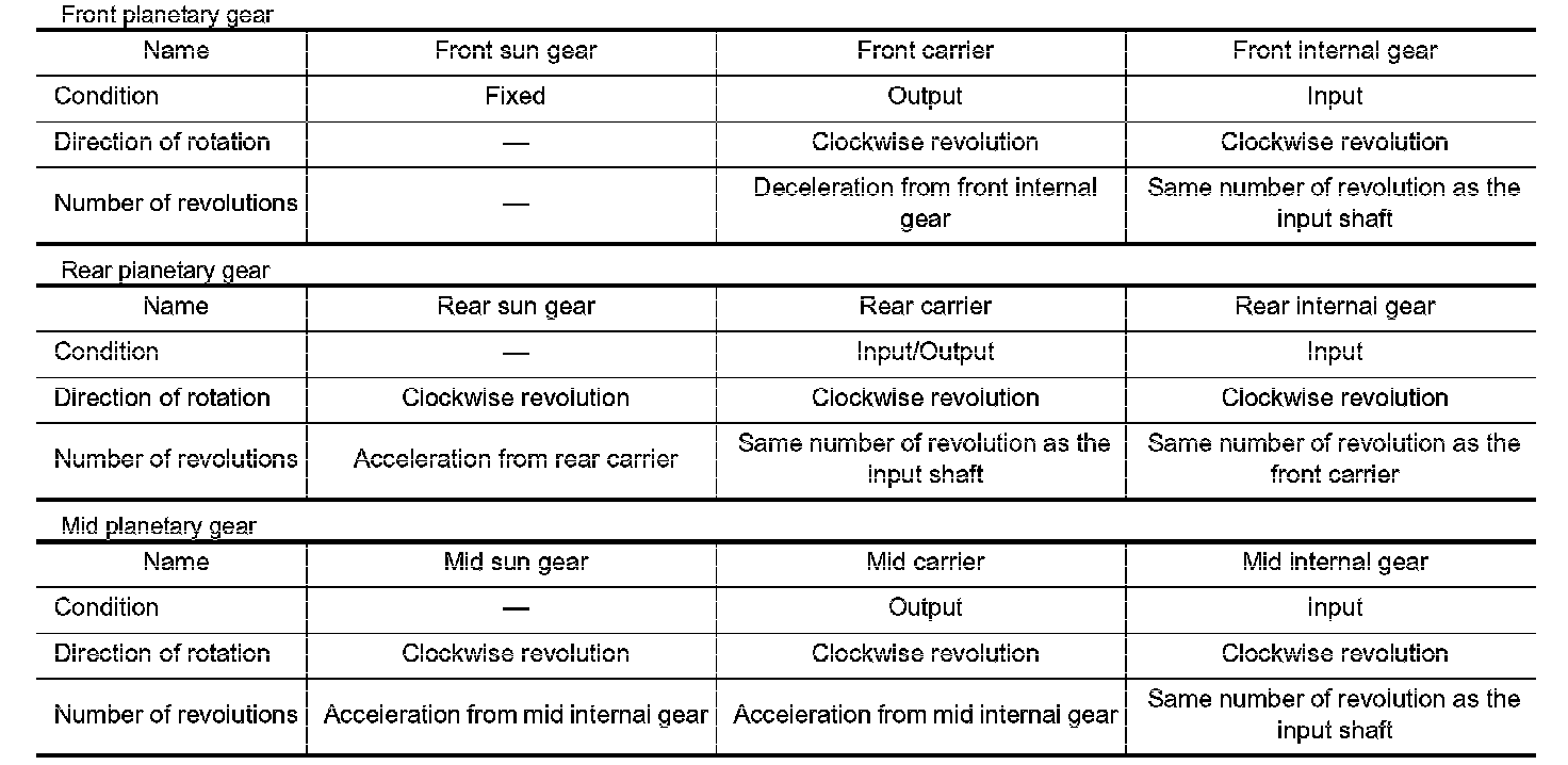 - The rear carrier and the mid internal gear are fixed by the reverse brake.
