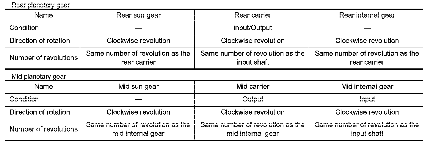 - The mid sun gear rotates at the same speed as the rear sun gear by operation of the 2nd one-way clutch and the high and low reverse clutch.