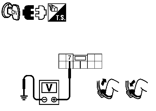 4. Check voltage between A/T shift selector connector M133 terminal 7 and ground.