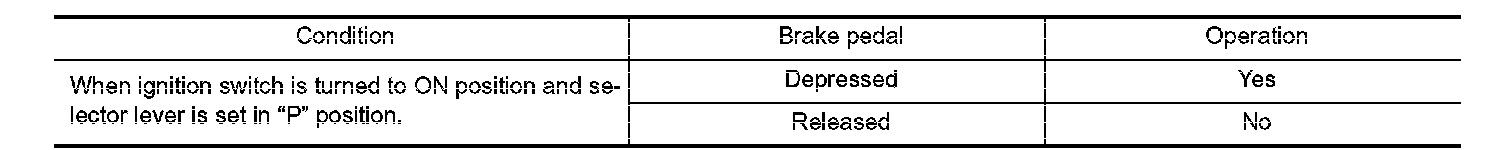 - Selector lever cannot be moved from "P" position with key in ON position and brake pedal applied.