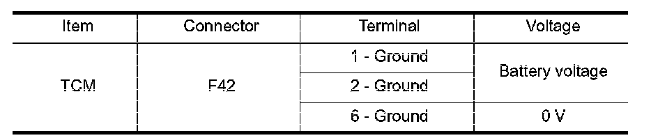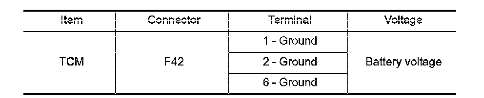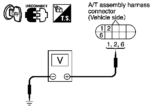 3. Check voltage between A/T assembly harness connector terminals and ground.