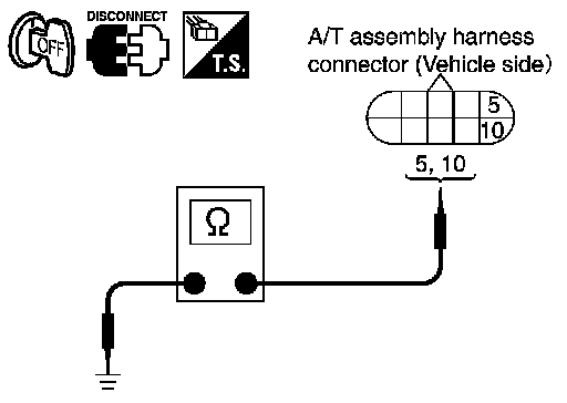 3. Check continuity between A/T assembly harness connector terminals and ground.