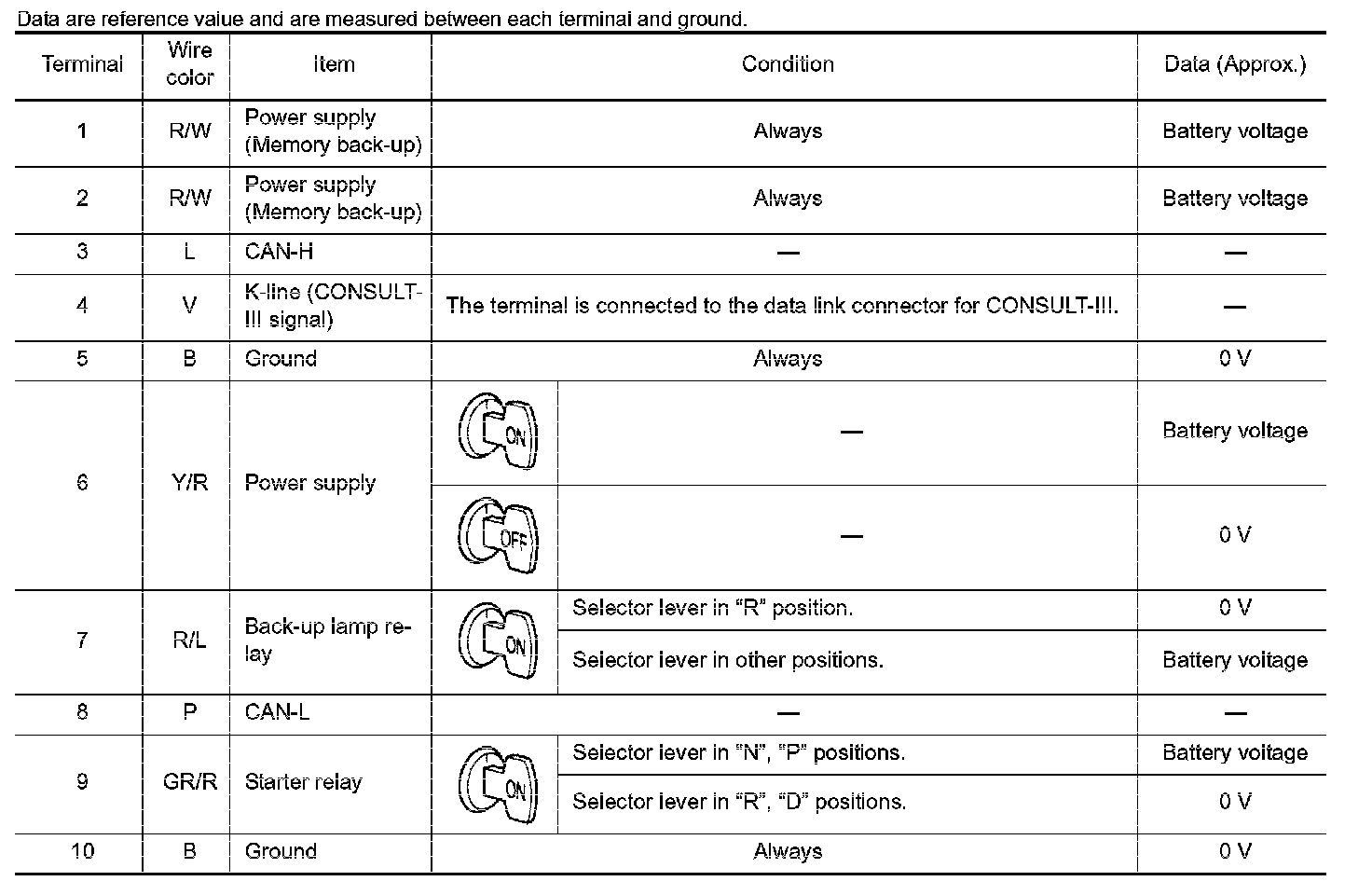 A/T ASSEMBLY HARNESS CONNECTOR TERMINAL LAYOUT