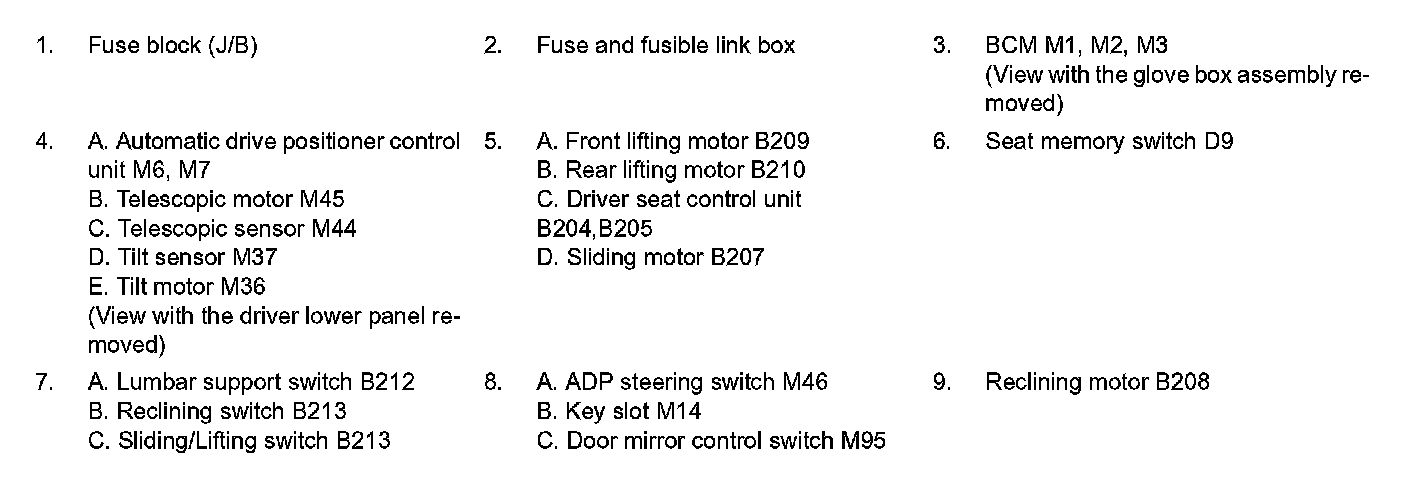 Component Parts and Harness Connector Location