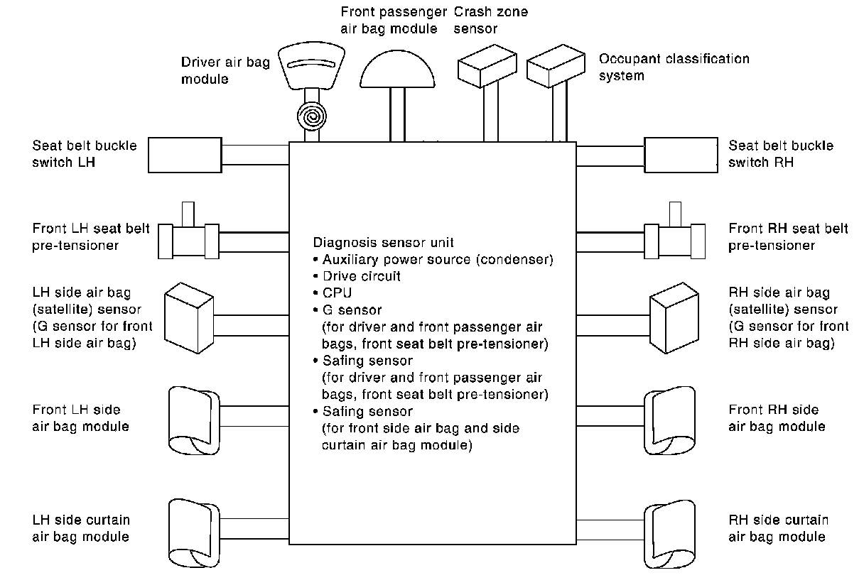 The air bag deploys if the diagnosis sensor unit activates while the ignition switch is in the ON or START position.