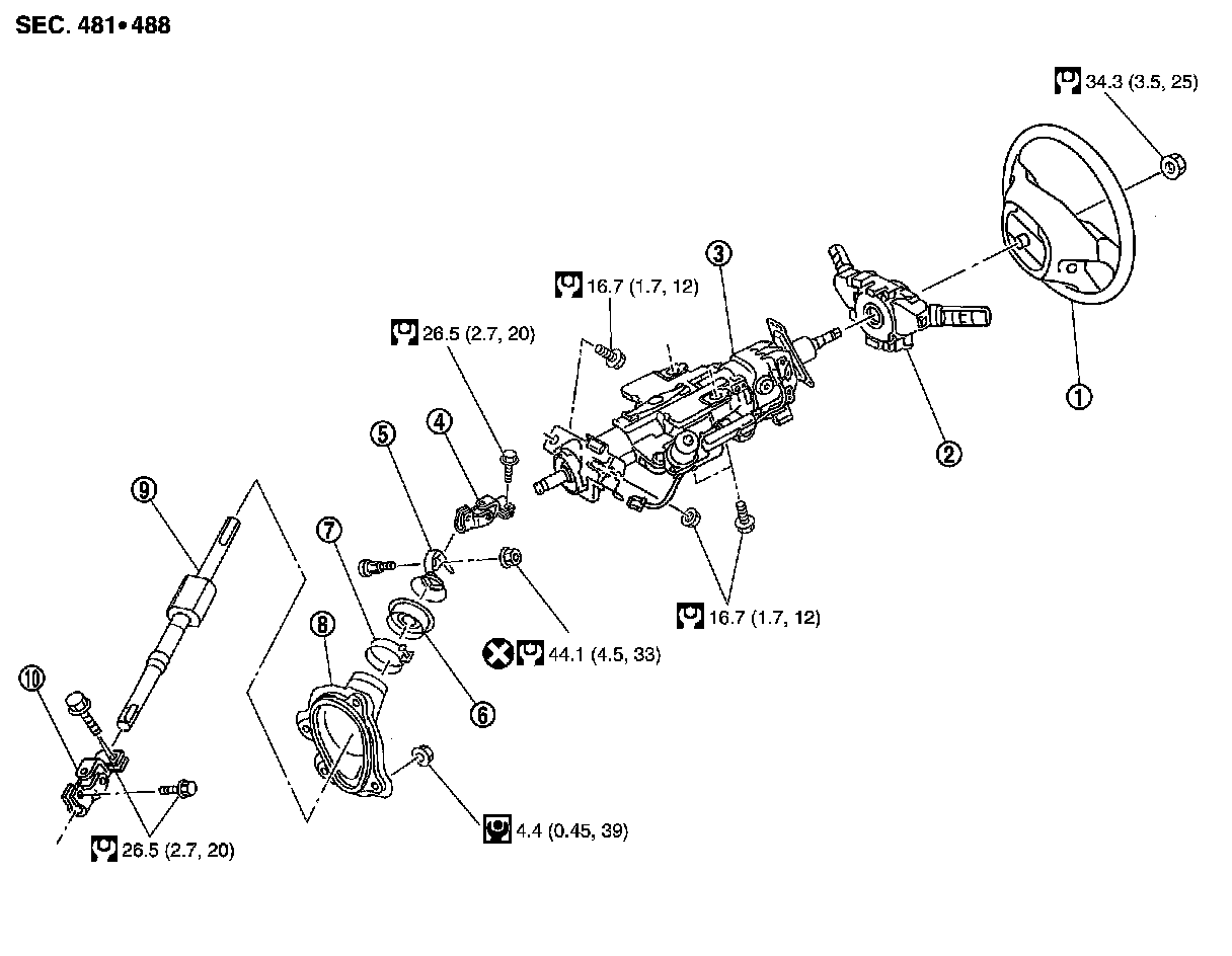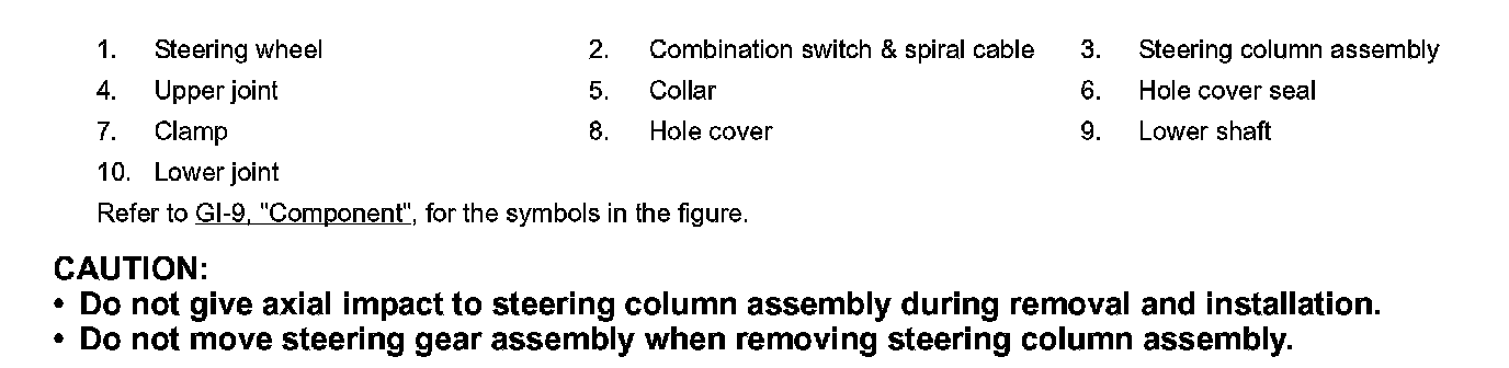 - Check each part of steering column assembly for damage or other malfunctions. Replace if there are.