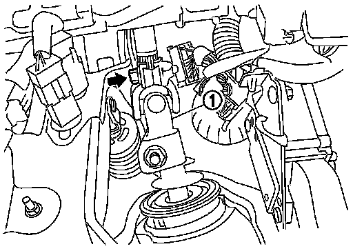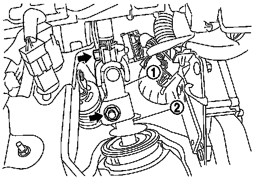 10. Remove fixing bolt of upper joint (1) (steering column assembly side).