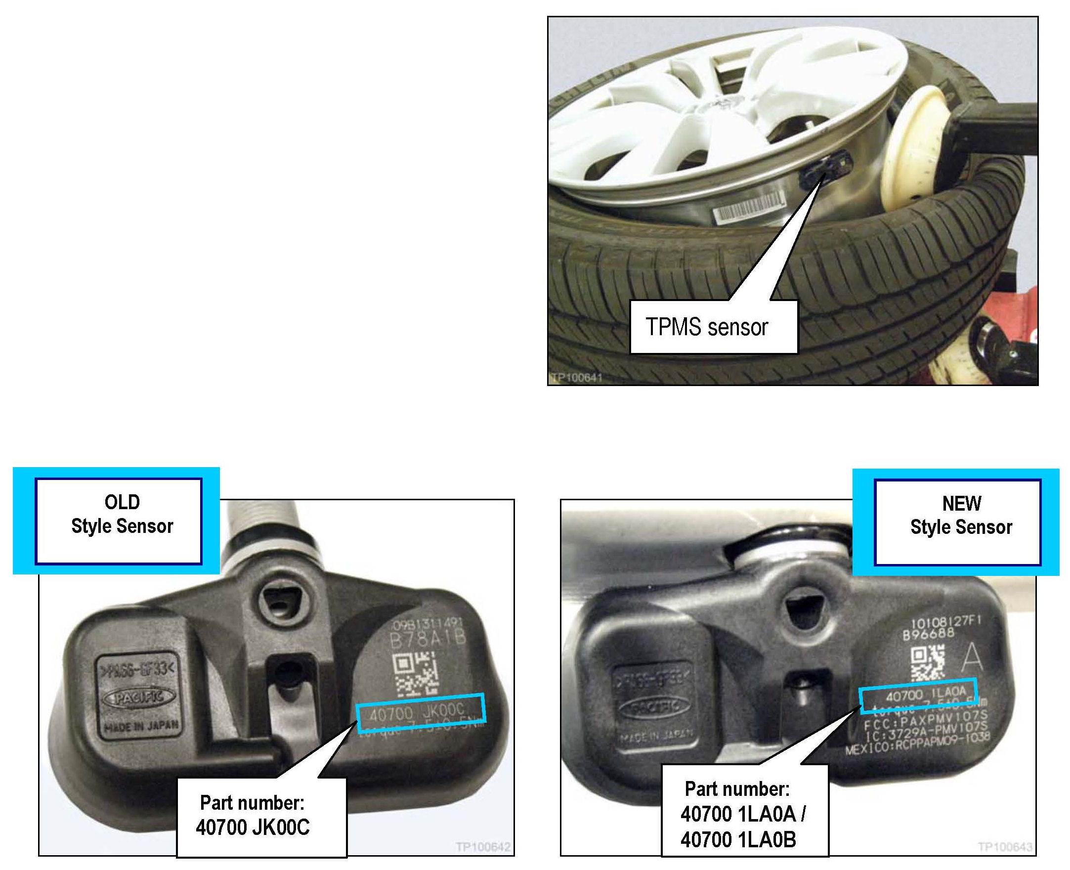 > Full wheel assemblies (wheel and tire assemblies with TPMS) cannot be swapped between old style sensor-equipped and new style sensor-equipped vehicles.