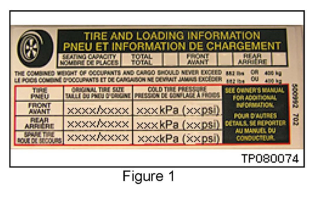 Each vehicle is equipped with a "Tire and Loading Information" placard (see example in Figure 1).
