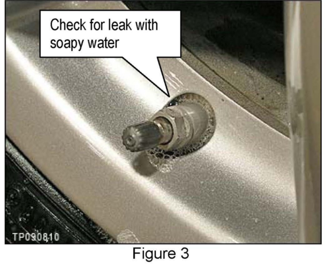 ^ Wait a minimum of five minutes and then visually inspect to see if bubbles are forming around the base of the valve stem.