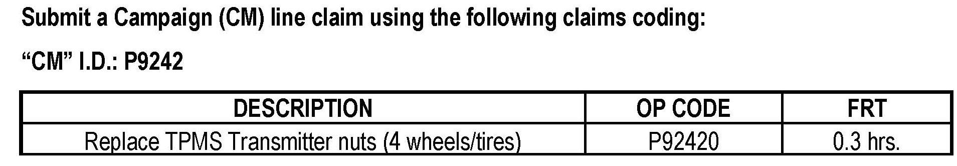 Recall P9242 - TPMS Valve Stem Nut Corrosion: Overview