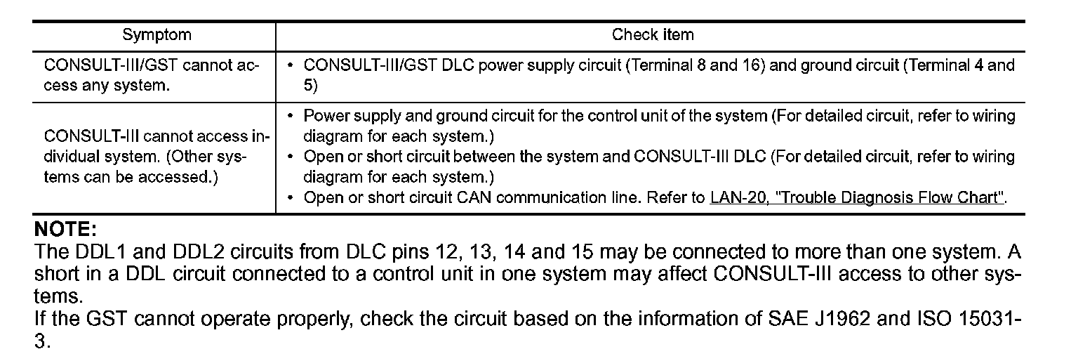 If the CONSULT-III/GST cannot diagnose the system properly, check the following items.