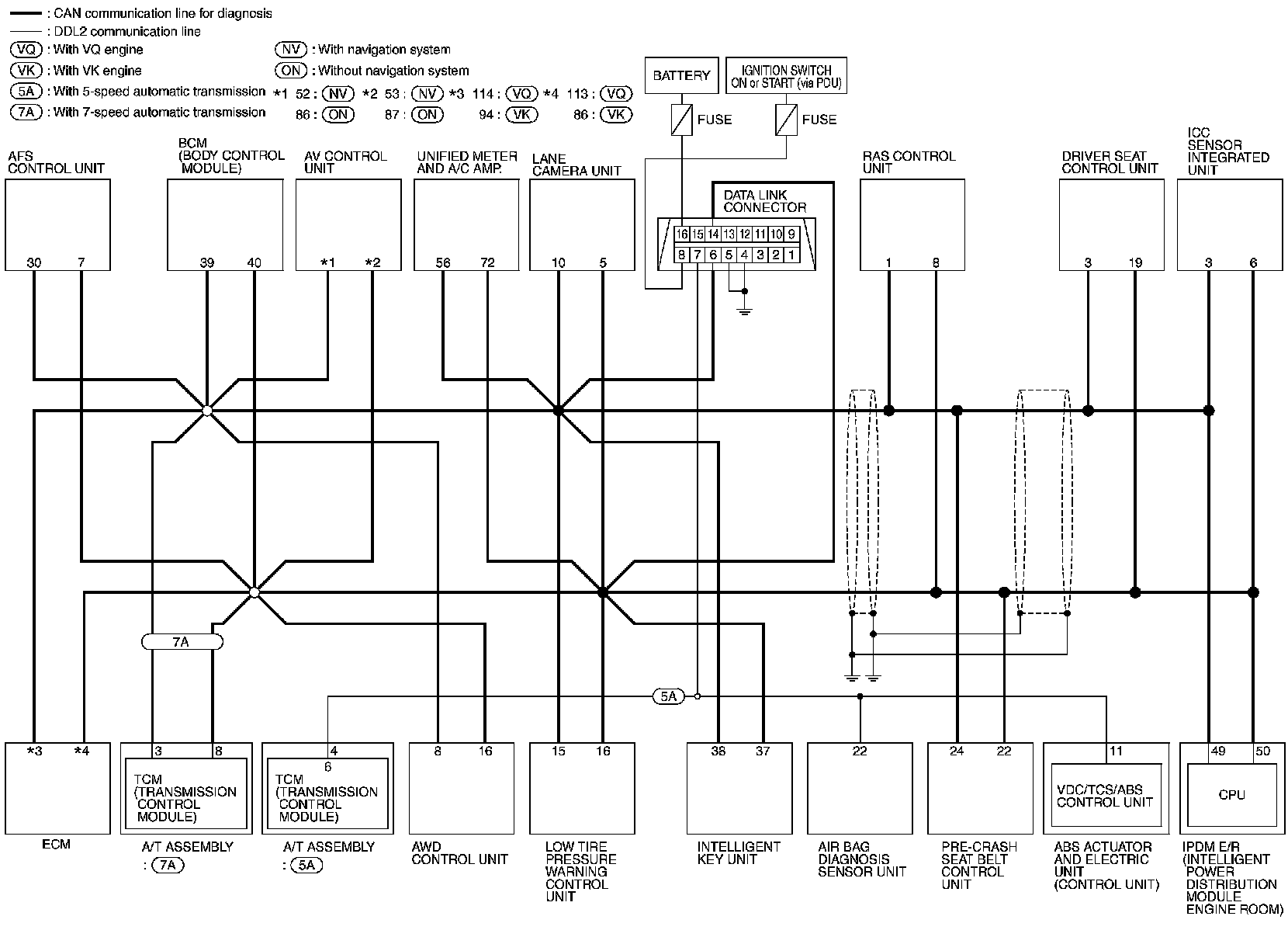 CONSULT-III/GST Data Link Connector (DLC) Circuit