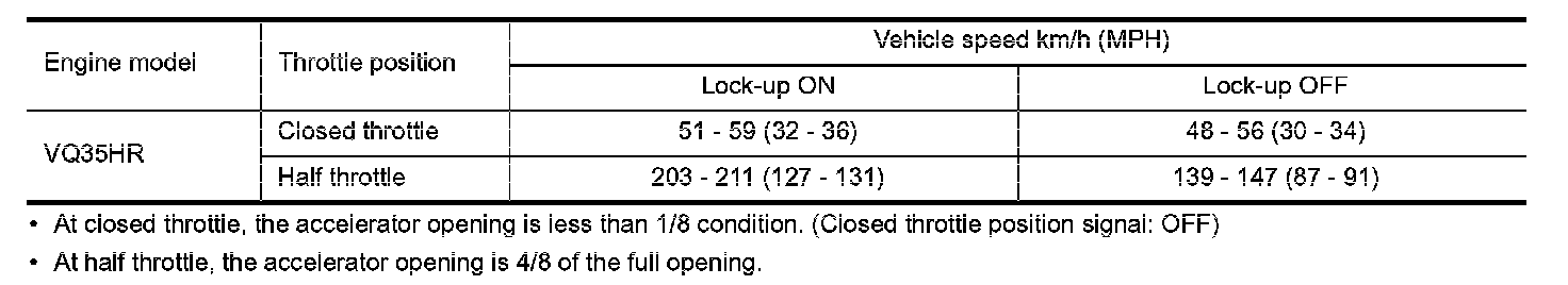 Vehicle Speed at Which Lock-Up Occurs/Releases