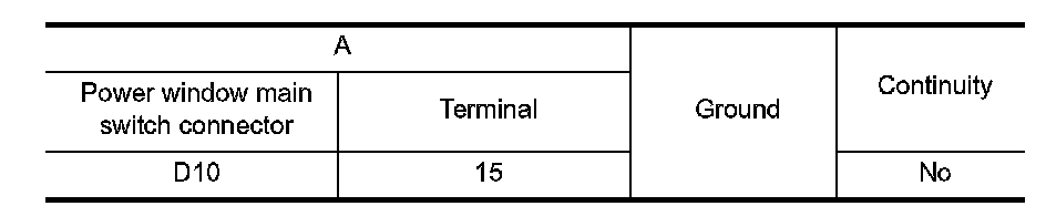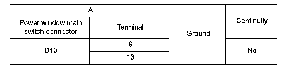 4. Check continuity between power window main switch connector and ground.