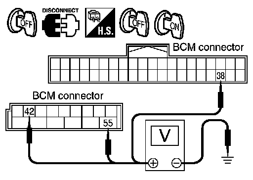 3. Check voltage between BCM harness connector and ground.