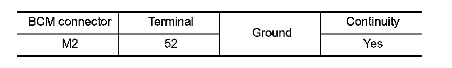 Check continuity between BCM harness connector and ground.