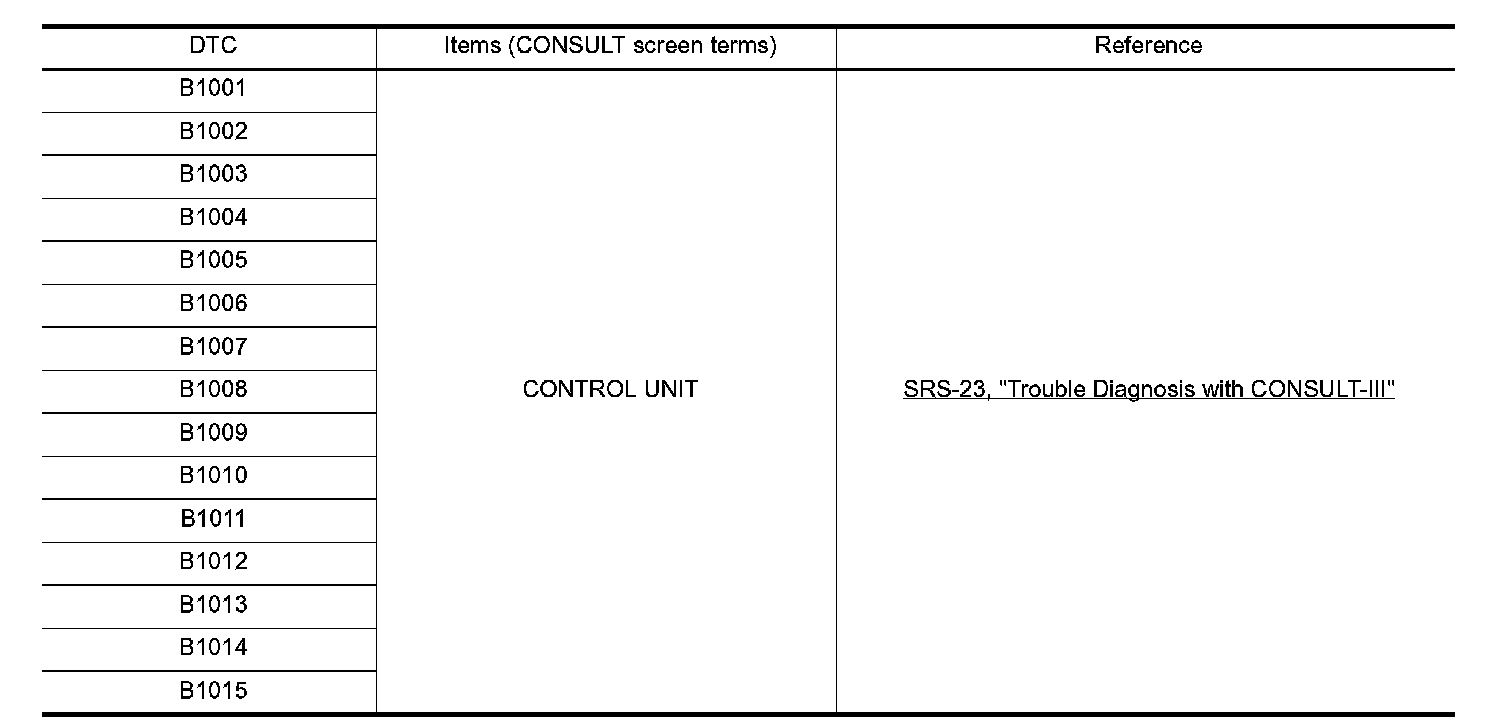 DTC Index B1001-B1015: