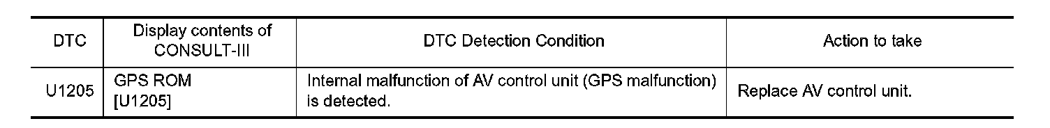 Replace the AV control unit if this DTC is displayed. Without Mobile Entertainment System.