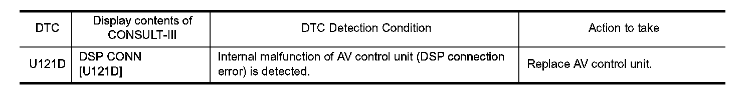 Replace the AV control unit if this DTC is displayed.