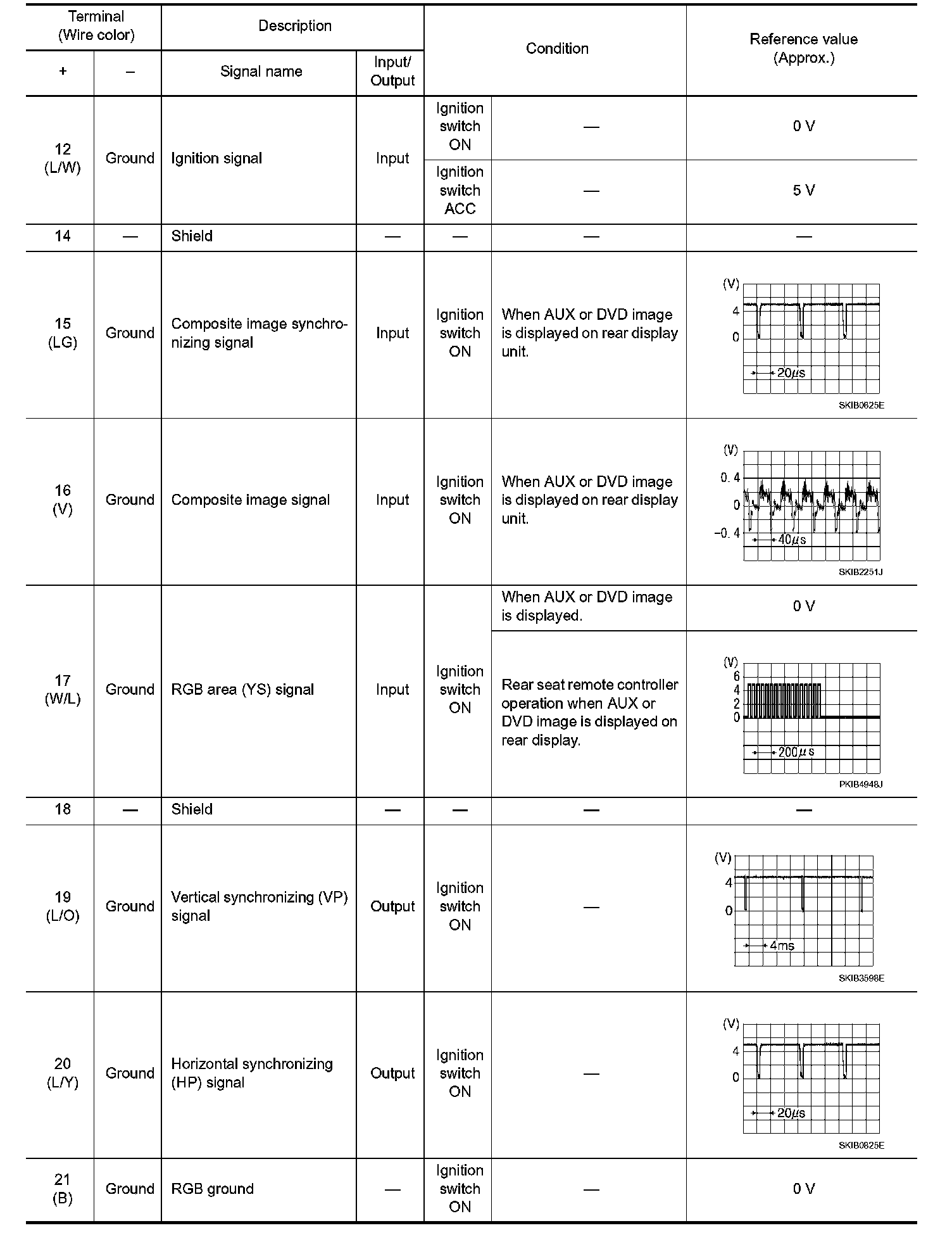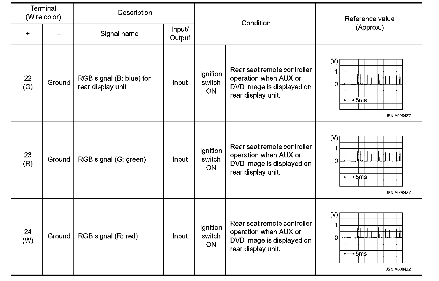 Pinout Values and Diagnostic Parameters