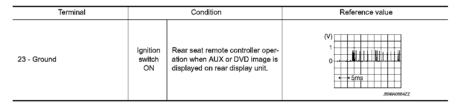 3. Check signal between rear display unit harness connector terminal 23 and ground.
