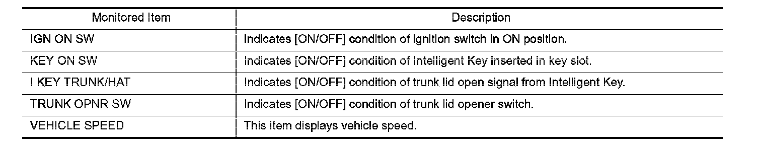 CONSULT-III Function (BCM-TRUNK)