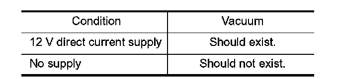 4. Turn VIAS control solenoid valve ON and OFF, and check vacuum existence under the following conditions.