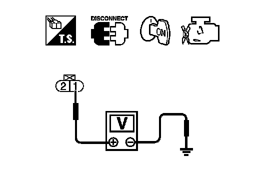 4. Check voltage between VIAS control solenoid valve terminal 1 and ground with CONSULT-III or tester.