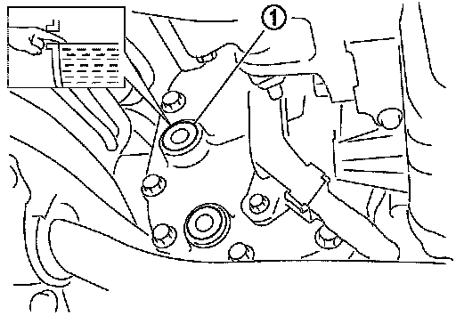 1. Remove filler plug (1). Fill with new gear oil until oil level reaches the specified level near filler plug mounting hole.
