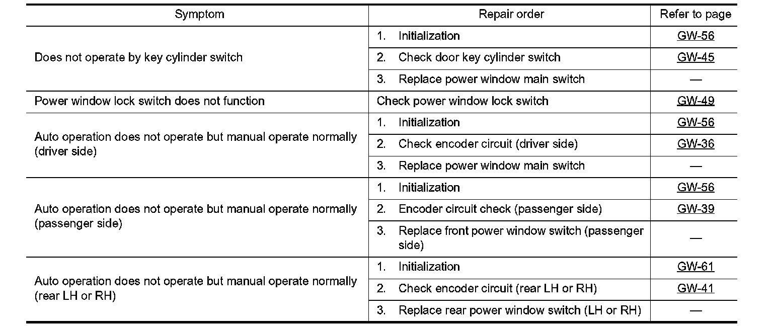 Trouble Diagnosis Symptom Chart (Part 1):